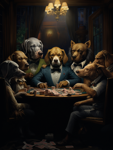 Dogs Playing Poker Brown & Begelow Cigars by Matt Bors--v 5.2 --ar 3:4