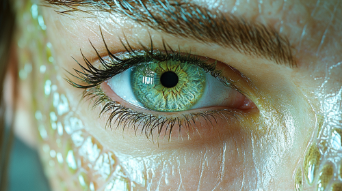 crocodile eye, high fashion editorial, vogue, in the style of polixeni papapetrou, stanley kubrick, light green, kathryn morris trotter, sony alpha a1, woven/ perforated, 35 mm, 20th century scandinavian style --ar 16:9 --s 750
