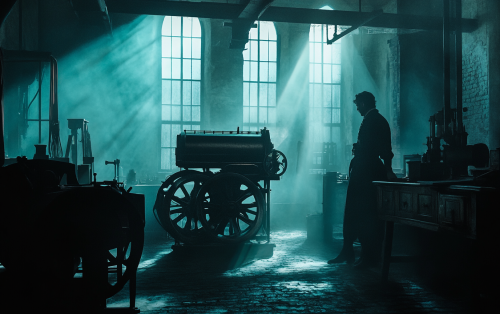 With industrialization in the second half of the 18th century, productivity skyrocketed, cinematic lighting, high contrast, rich colors cinematic, moody, high definition, --ar 8:5