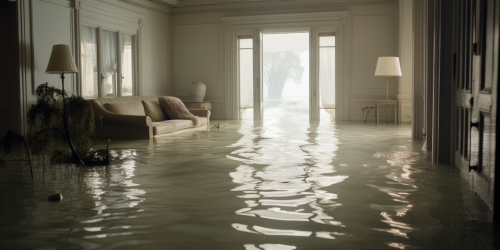 Flooded room without anything in a house in new jersey with transparent water, light background --ar 2:1