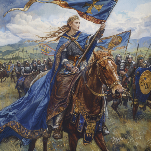 medieval portrait, regal, blonde, 50 years old, wrinkles blue eyes, female