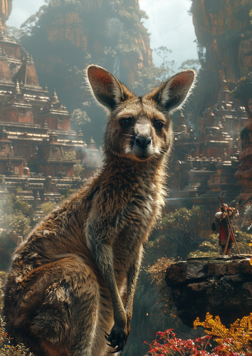 A majestic Latino Transcendent epic cinematic scene image with kangaroo, Palatial, a latino art style, and a Steadicam view --ar 5:7 --s 750 --v 6.0
