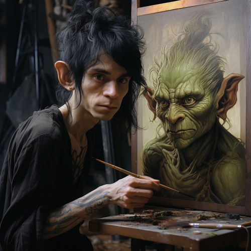goblin, black hair, staff, epic fantasy art, magic, batik, hyperrealism