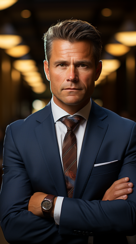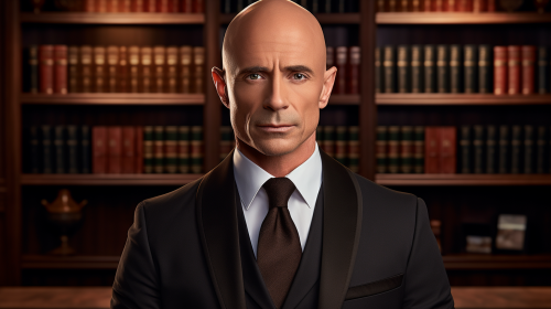 photorealistic, high definition, title screen for law tv series, bald man lawyer, no text --ar 16:9
