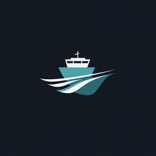 Create a sleek and modern logo for a shipping and delivery company. The design should be innovative and clever, incorporating symbols of transportation like a stylized ship, airplane, or truck. Use minimalistic shapes and clean lines to ensure simplicity. The color palette should be professional, with a focus on blues, grays, or greens to evoke trust and reliability. Consider integrating a subtle element that represents speed or efficiency. The final logo should be versatile for both digital and print use, and easily recognizable at small sizes.