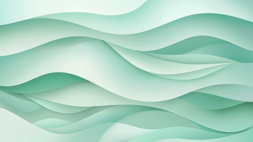 A pastel aqua green vector background with layered, flowing wave patterns, taking inspiration from the third reference image. The waves have a soft gradient and are layered to create depth and movement, with abstract elements scattered throughout. This design is ideal for a dynamic and elegant webpage. flat design, vector pattern, flowing waves, pastel aqua green, layered effect --ar 16:9 --v 6.0