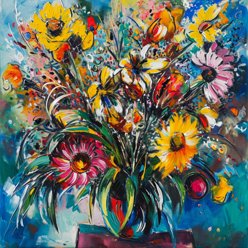 bouquet of flowers, kandinsky style, strong contrast, strong abstraction, oil on canvas, --v 6.0