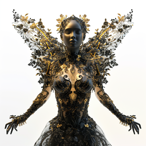 one isolated gothic ? lace tulle and leather psychedelic, front view, white background, made of gems, sumptuous, octane render, weta digital, ray trace, elegant, luxury, hypermaximalist --v 6.0
