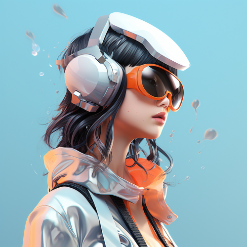 fashion design, headset goggles clothes design, girl, c4d cartoon, blender, no background, low angle shot --v 5.2