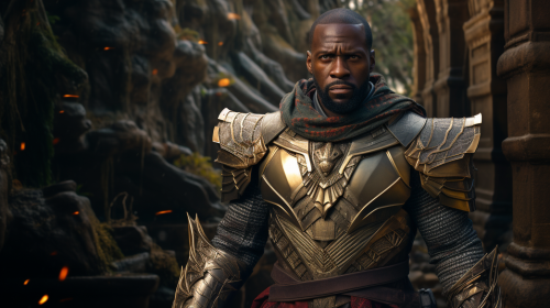 LeBron James as fantasy warrior, in style of 70s dark fantasy, cinematic, photorealistic, dungeons and dragons, --ar 16:9