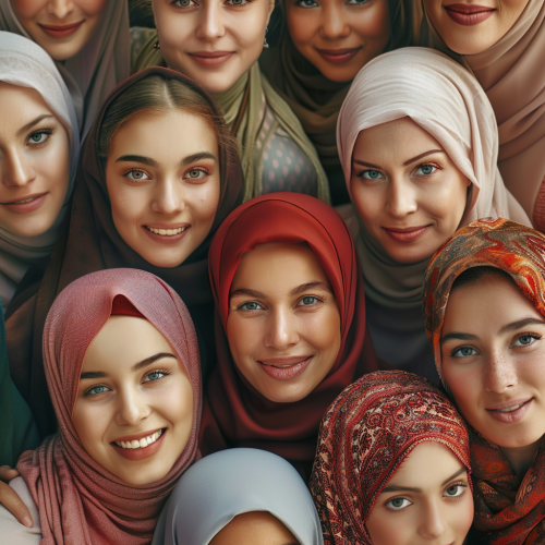 a realistic high quality pictures of happy women in the middle of supporting men with women of different ages, races and religions