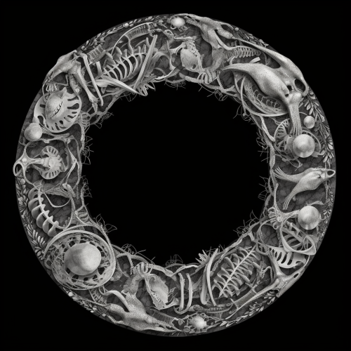 create a circular picture border made of bones, grey scale, american traditional art --v 5.0