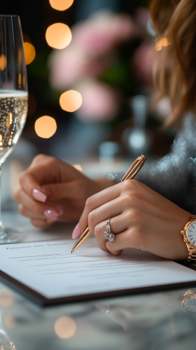 Realistic photo of a formal contract on a neat desk, displaying clearly defined terms and conditions, with a stylish pen placed beside it, suggesting a professional and organized environment. Photorealistic, realistic image, 8K resolution --ar 3:2 --v 6.1 --style raw