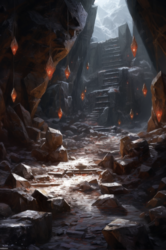 dwarven mines, underground, lots of dwarves, some crystals, concept art --ar 2:3