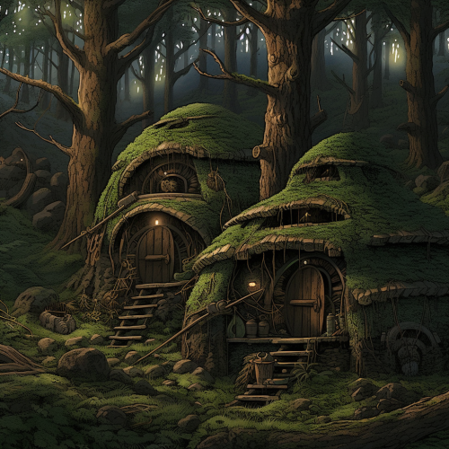 Grimdark mystic medieval celtic fir forest sacred dwarven domed battle hut, daytime, watchtowers, banners, barricades, dwarven cannons, extreme close-up view, high fantasy, digital art, masterpiece painting, ultra detailed, ultra high definition, 8K resolution, heavy shading, superior quality, cover illustration, complex design, high hills highlights, deep rich vibrant colours, hyperrealistic, meticulously hyper detailed, artstation