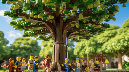 lego familly showing the father, thw mother and two boys 8 and 10 years old celebrating new year 2024 show text "Bonne Année 2024"