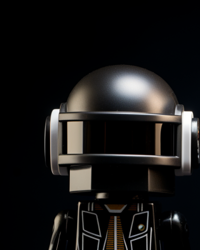 Daft Punk Robots as Lego Mini Figures ,standing side by side, solid black background, --ar 4:5