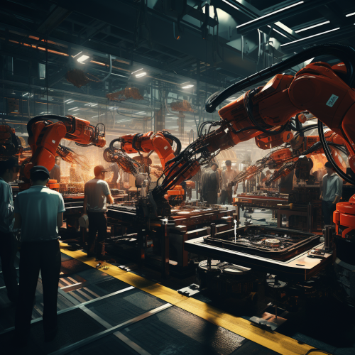 automotive production line with robots in use, photo realism 4K high contrast, super detailed, Tone Mapping,Ray Tracing Global Illumination , Optical, Scattering, Glowing, Shadows, Rough, Shimmer, Ray Tracing Reflections, Lumen Reflections, Screen Space Reflections, Diffraction Gradation,beautifully coded by color, insane detail, intricate detail, beautifully colored, Unreal Engine, Cinematic, Color Grading, --ar 16:7
