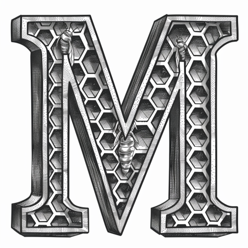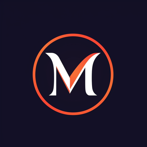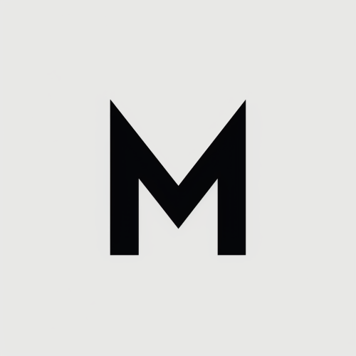 a broad sign with the letter “M” written in a simplistic bold font. The sign should be simple yet elegant. The color scheme should be black, white, and gray.