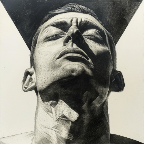 Man's face shaped like an inverted triangle, sharply tapering to the chin. --v 6.0
