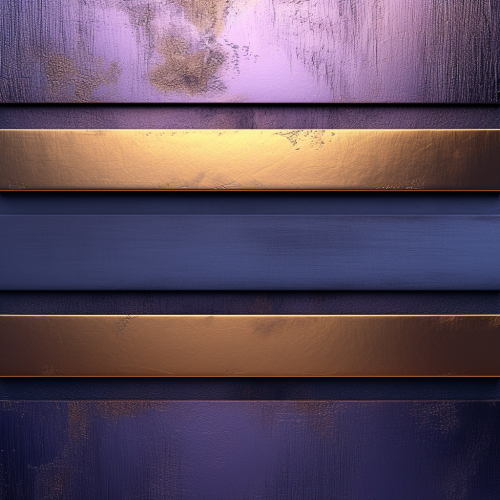 Create an image of a smooth, elegant background with a simple gradient of deep purples that blend seamlessly into each other. Towards the top, there should be a subtle, metallic gold border with a soft, brushed texture. The golden area should have minimal texture, appearing almost flat and clean, without the cracked or distressed look. The purple area should be free of any complex textures or patterns, presenting a more uniform and contemporary appearance. This background should convey a sense of luxury and simplicity, suitable for a sophisticated advertisement or an elegant branding display. --s 750 --v 6.0 --style raw