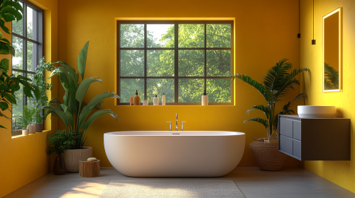 wide view of a futuristic bathroom, high details, stylized artwork, early morning time with sunrays coming inside the room, bathroom with modest futuristic furnitures, mirror on the left wall with a neon light above, vibrant colors, large horizontal window in the background with a breathtaking view over an industrial cyberpunk city, high details, rays of suns coming inside the room by the window, blue and pink lighting, no bathtub on the picture, cyberpunk conceptual art, artwork, fantasy drawing, 2.5D ,4K, HD --v 5.2 --ar 16:9