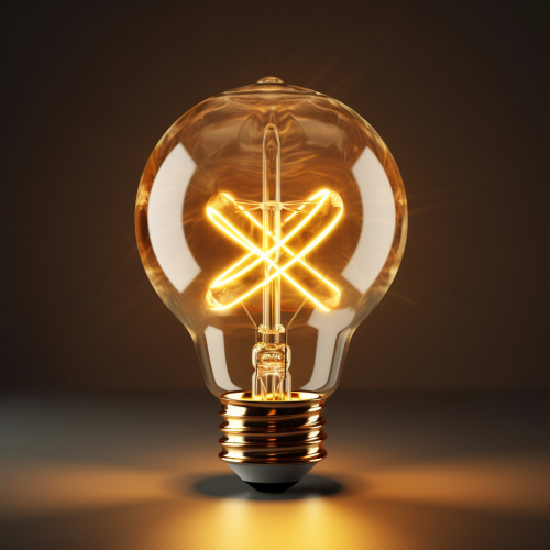 realistic clear glass lightbulb with the filament in shape of a cross, gold background