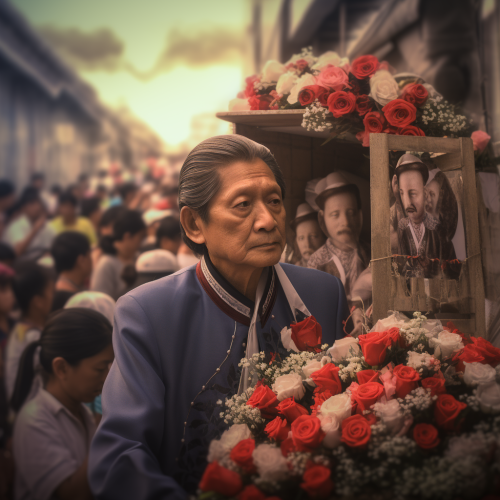 president ferdinand marcos filipino dirtry street cementery all souls day 4k realistic photo