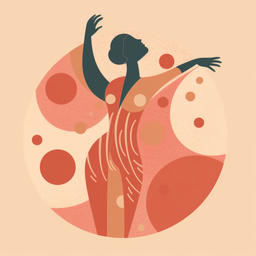 joyful female shape, minimalistic linocut style, very simple, vector graphic, grainy texture, pastel warm colors, --v 5.0