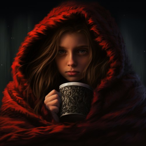 12 year old girl wrapped in a blanket drinking something hot. Chiaroscuro