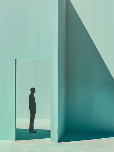 wall art Decorative silhouettes symbolize creativity and vision. Clean lines, light blues and minimalist tones. material design quiet elegance Minimal beauty --ar 3:4 --v 6.0
