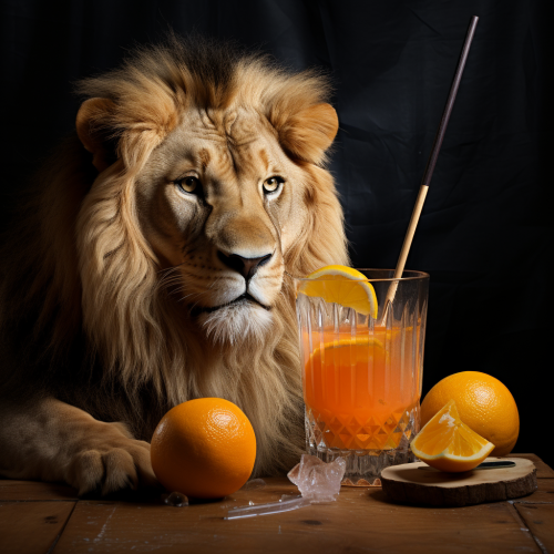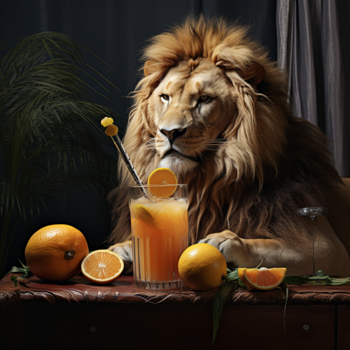 lion wearing an neon blue sports jacket and orange frame glasses with orange lenses, quarter profile, waist up --chaos 1 --ar 16:9 --stylize 250 --v 6.0