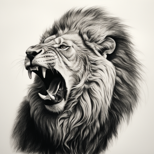sketch for realistic tattoo in shadows of a realistic lion's head in the center, on the sides perfectly symmetrical baroque ornaments, white background --ar 16:9 --v 6.1