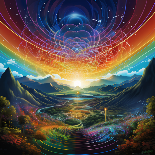 Abstract expressionist, metaphysical painting. A strange organic form that stands out from the liquid mirror mass. Scribbled colorful mercury surface surreal amoeba.
