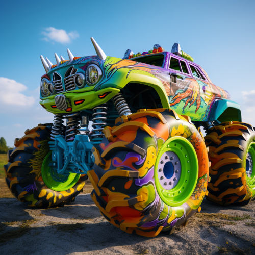 A large plastic futuristic RC monster truck toy with giant wheels, 3d animation, preschool vibes --ar 1:1