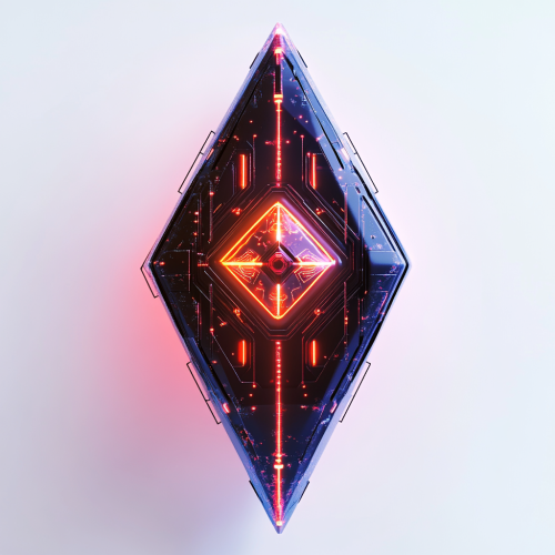 3d render of a tech abstract logo masterpiece, white background, glowing neon vertically converging signals coming together nto a mystical hedron stone, Data transfer concept art, D&D lore and theme, amulet of adventure, insane detail, vector art, circuit art, japanese art nouveau aesthetics --ar 1:1