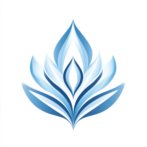 symetrical, mirrored abstract logomark for a med spa. Clinical. Sleek. Transparent. Professional. Efficient. Clean. Inviting. Dependable. Confident. Comforting. Relaxing blues and whites.