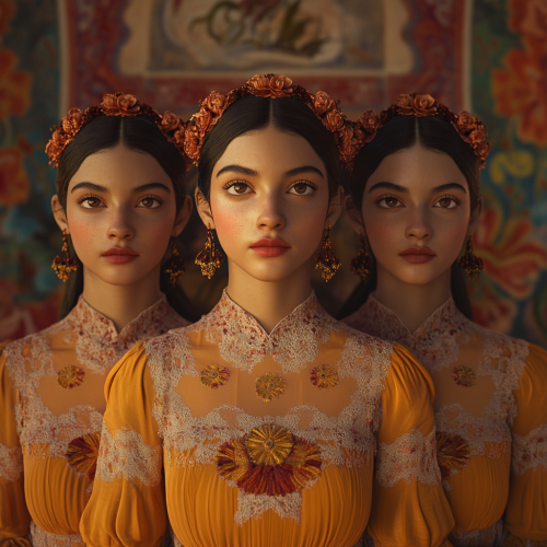 create an image of Mirabel Madrigal, Isabela Madrigal and Luisa Madrigal the encanto movie sisters, 4k ultra-HD. Dynamic angle view, detailed photograph, ultra sharp focus, high detail, c4d octane render, 3D photo realistic, perfect center composition, centered, symmetry, vibrant pulsing color, extremely dynamic, 4k, beautiful hyper detail, cinematic lighting, octane render, hyper realistic, color contrast, eye catching, depth of field, offering a hyper esthetic and intricate portrayal that captures attention and imagination. golden ratio, ultra sharp focus, high detail, octane render, photo realistic, front view, detailed photograph, Leverage 3D rendering techniques to bring the subject to life, incorporating hyper realism and hyper esthetic elements. Sharpen the image to emphasize the fine details, vibrant pulsing colors, extremely dynamic, 4k, beautiful hyper detail, cinematic lighting, octane render, hyper realistic, color contrast, depth of field, hyper detailed,