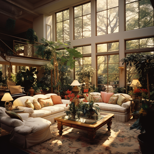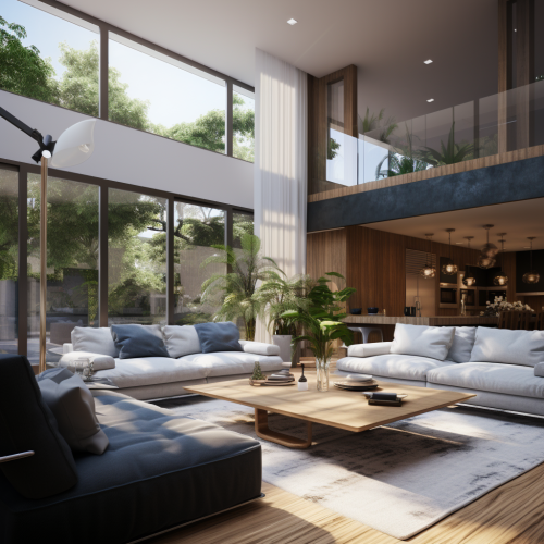 floorplan gridlines imposed on contemporary open concept living room, 4k, purple hues, white background, hud, generative ai, futuristic