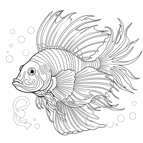 Coloring page, wahoo fish, white background, clean line art, simple mandala, fine line art, no shading, HD vector