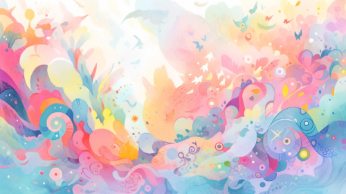 cute , tender , psychedelic fantastic background , watercolors , made by a child