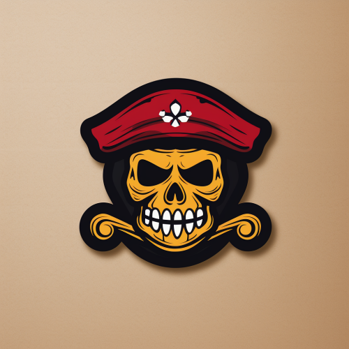 A sticker with a company logo, inspired by cartoon, Cute sea pirat, simple sketch, minimal, black red and gold colors --v 5.2