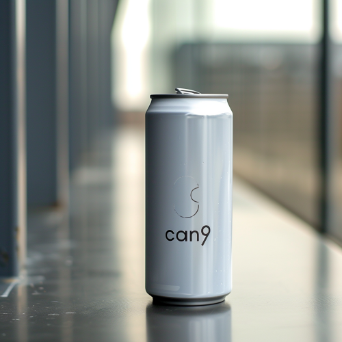 Cocacola can with oreo in the image buscuit leaning to the can. Make the background white-bluish, and make the can's colour not red