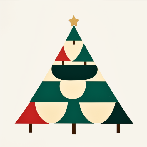 christmas tree, flat design, minimalist, red green gold, wim crouwel