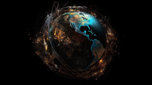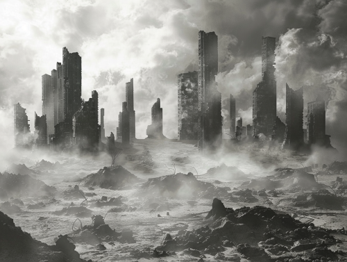 futuristicend of the world random , dark black background --ar 16:9 --v 5.0 --s 750
