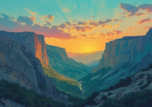canyon view in summer. Colorful canyon landscape at sunset. nature scenery in the canyon. amazing nature background. summer landscape in nature. Tasyaran canyon travel in the great valley, realistic --v 6.0 --ar 7:5