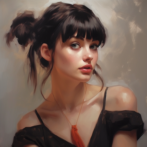 Dutch braid, dark hair, with blunt cut bangs, lazy style, oily paint, face up, only show upper body, details in hair, smooth, beautiful lady