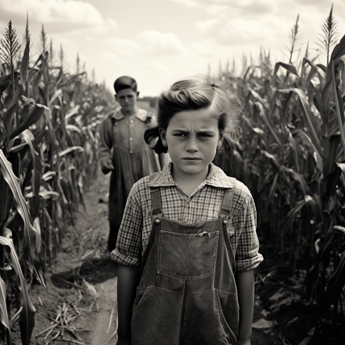a ghostly vision of a 1950s diner in a large corn field, night, mysterious, misty, cinematic lighting --v 6.0 --ar 17:11