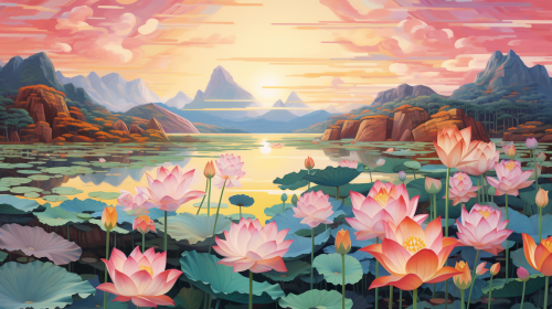 lotus pond:: Hokusai, minimalist art, zen --ar 5:8 --v 5.2 --no person, woman, man