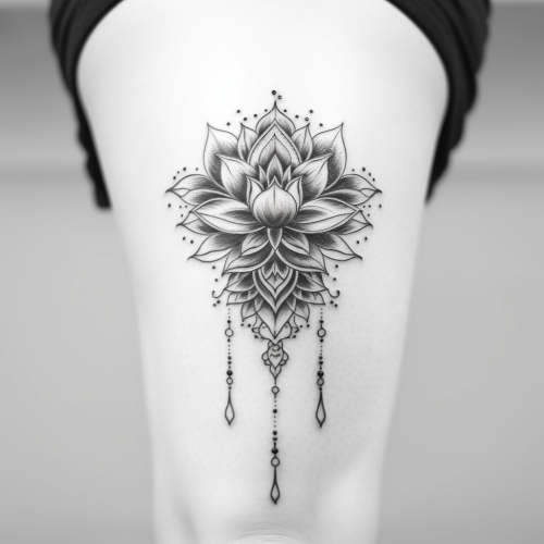 [6a25edd1c] Lotus, ink painting, lotus leaves, splashing ink --v 5.2 --ar 9:16 --c 0